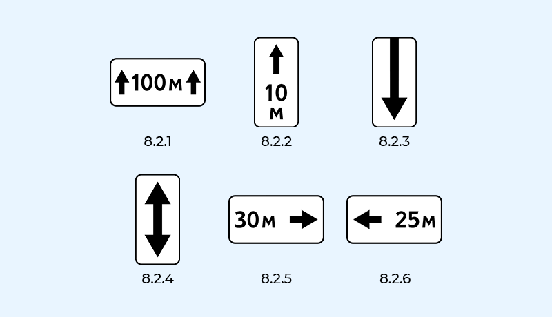- Расстояние до объекта — показывает, на каком расстоянии от знака начинается действие основного знака.