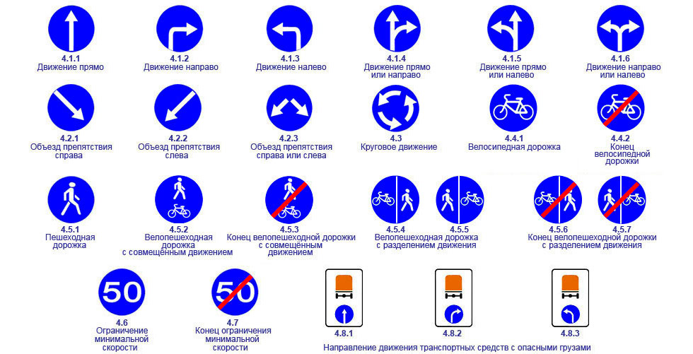 Рассмотрим наиболее распространённые предписывающие знаки с пояснениями дорожных знаков для начинающих водителей. Вот некоторые из них: