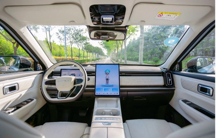 Внутри приборной панели Chery Tansuo 06 C-DM находится 13,2-дюймовый информационно-развлекательный экран с красочной системой искусственного интеллекта Chery. Для водителя есть как меньший ЖК-экран приборов, так и широкий HUD. В кабине используется чип Qualcomm Snapdragon 8155. На информационно-развлекательном экране можно использовать такие функции, как караоке, игры и просмотр видео. Передние сиденья имеют подогрев и вентиляцию, а сиденье водителя также получило функцию массажа и память положения.